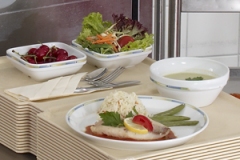 Verbesserte visuelle Anrichtequalität durch die neue Art des Anrichtens am stehenden Tablett.